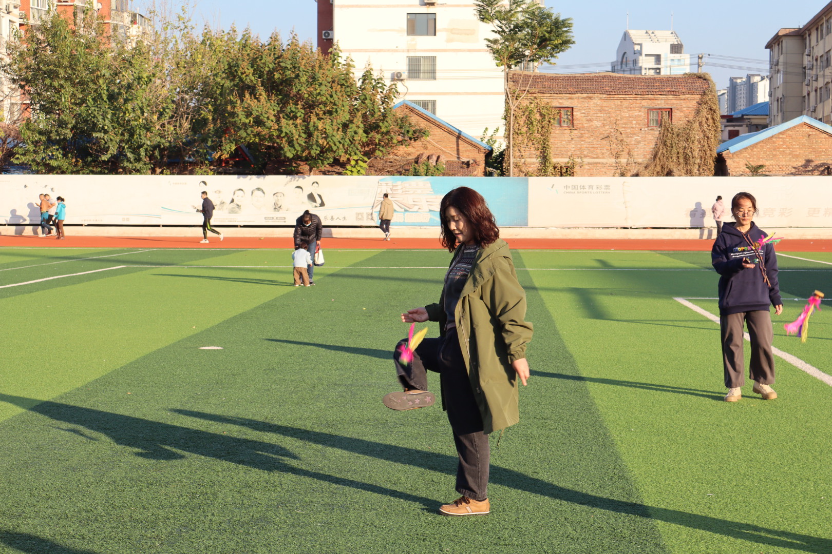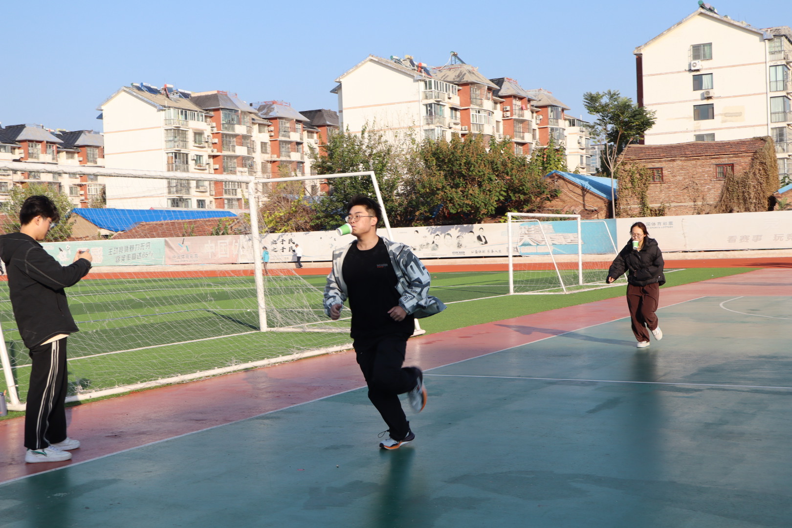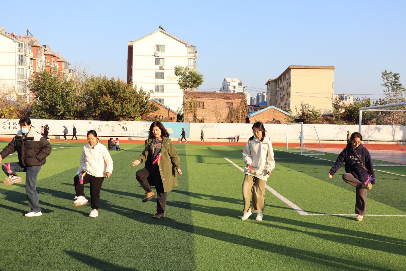 五环体育馆的操场上,精彩呐喊声不断,进行着一场别开生面的运动会,运动会巧妙融合趣味与竞技,设置了投篮、踢毽子、夹乒乓球、指压板跳绳、气球运杯、击鼓传花6个精彩项目,既有技巧的比拼,也有速度的较量。参赛选手们摩拳擦掌,跃跃欲试,在志愿者的组织下,各项趣味活动有条不紊地进行着,大家尽情挥洒汗水,释放激情,玩出了“精气神”,畅享运动健身的快乐。经过两个多小时紧张刺激又充满欢声笑语的激烈角逐,趣味运动会圆满落下帷幕,社区负责人为获得一等奖、二等奖、三等奖的参赛选手颁发了奖品并合影留念。