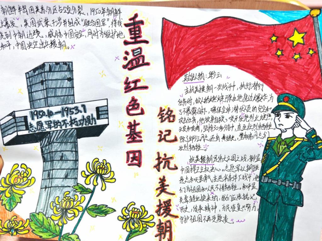 为纪念抗美援朝出国作战74周年,弘扬抗美援朝精神,激发学生爱国热情,10月25日,太阳成集团122ccvip开展“重温红色基因,铭记抗美援朝”手抄报活动。