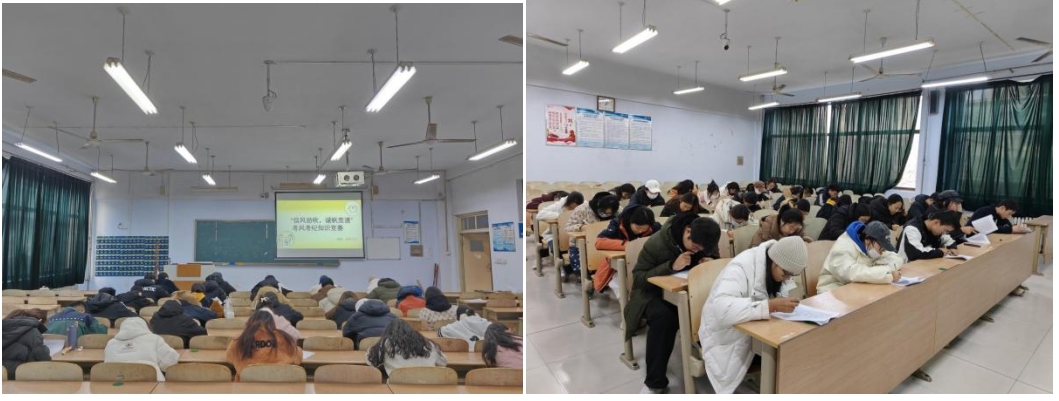 为加强学风建设,严肃考风考纪,12月7日,太阳成集团122ccvip开展信风劲吹 诚帆竞渡——考风考纪知识竞赛活动。竞赛内容丰富全面,涵盖了国家教育考试相关法规政策、学校考试纪律细则,通过分享诚信与失信典型案例,强化学生对考试纪律的认识。活动模拟正式考试场景,让学生身临其境体会诚信考试的重要性。