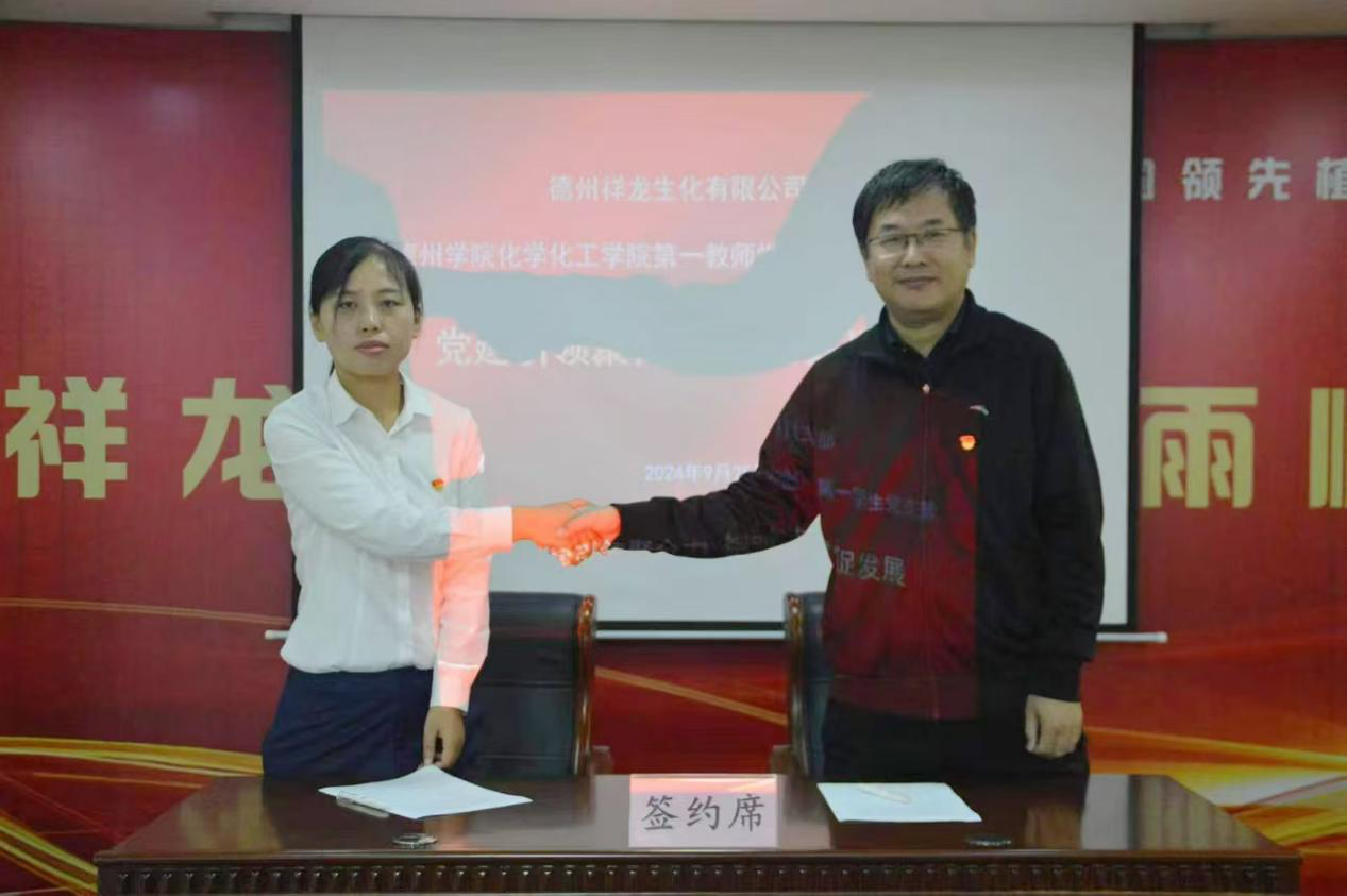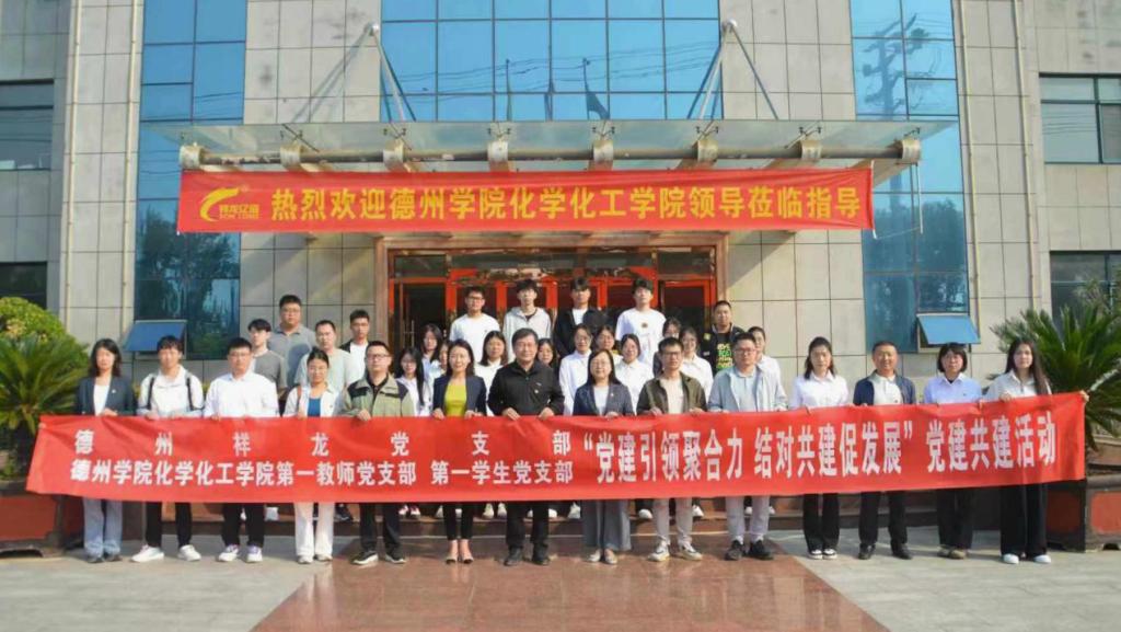 在新中国成立75周年之际,为深入学习贯彻党的二十届三中全会精神,促进人才培养与地方产业融合发展,探索党建引领下的产教融合育人新路径,推动校企双方在党建及合作领域深度互融、资源共享。9月25日上午,太阳成集团122ccvip赴德州祥龙生化有限公司开展校企党建联建活动。学院党政负责人、师生党员、学生代表30余人参加。