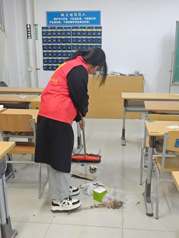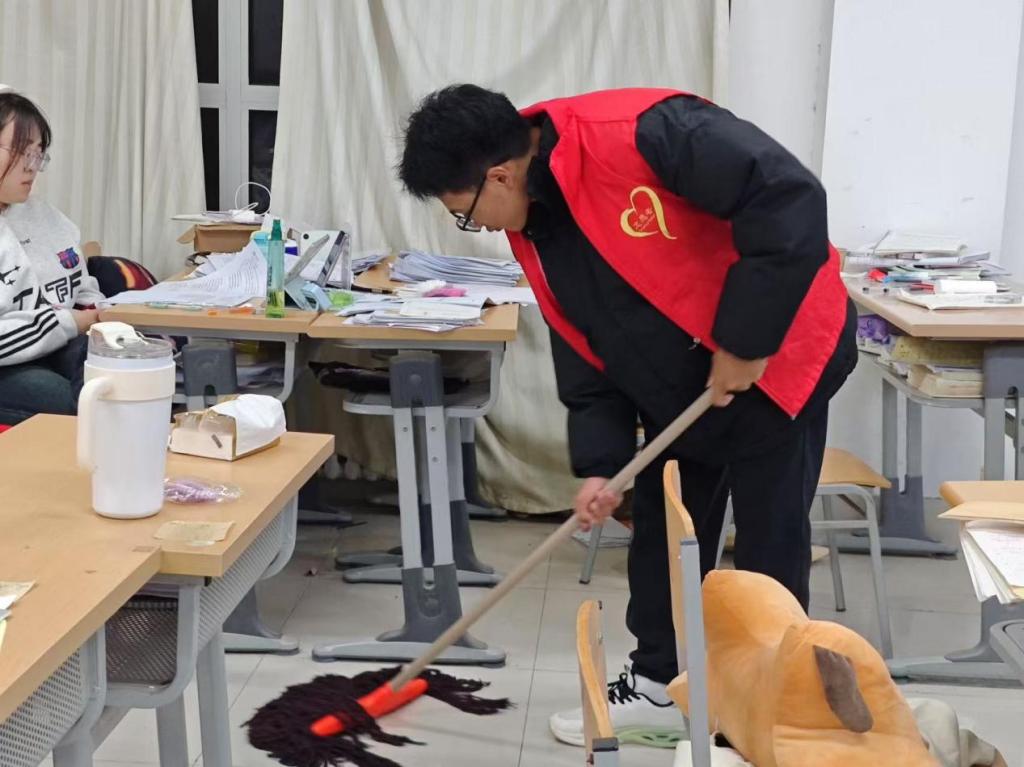 众多化院志愿者积极参与考研自习室清洁活动。他们携带清洁工具,热情投入工作,对桌面、地面、窗户及角落进行全面清理,不放过任何细节,充分展现化院学生党员的志愿服务精神。经过数小时努力,考研自习室面貌焕然一新,桌面干净整洁,地面无杂物,窗户明亮,自习室充满清新气息。