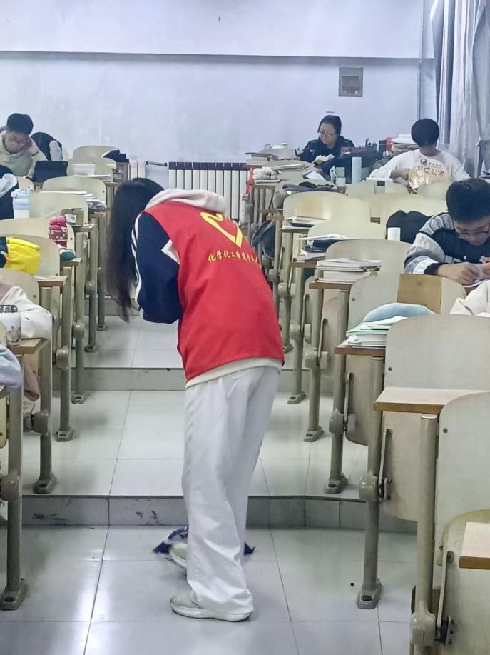 本次志愿服务活动为考研学子们提供了一个良好的学习空间,培养了同学们吃苦耐劳的精神,充分体现了化院学子的凝聚力,为绿色校园贡献出自己的一份力量。