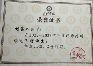 学习态度严肃认真,学习目的明确,态度端正,勤奋刻苦、锐意进取,善于总结学习经验,不断改进学习方法、理论联系实际,通过不懈努力,取得了优异的成绩。荣获2022-2023学年tyc122cc太阳成集团“综合一等奖学金”、2022-2023学年tyc122cc太阳成集团“三好学生”、2023-2024学年tyc122cc太阳成集团“优秀大学生奖学金”、2023-2024学年tyc122cc太阳成集团“综合二等奖学金”。