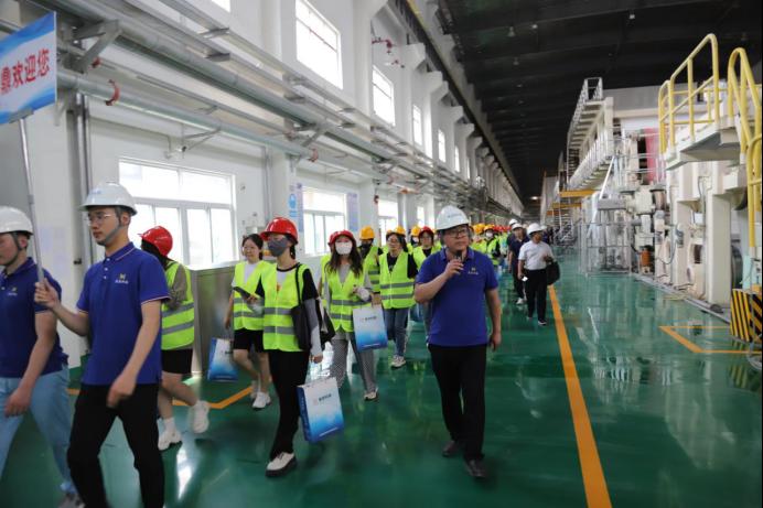 随后在公司领导的陪同下同学们前往生产一线,先后参观了在建的4400车间、化机浆车间、碱回收车间、水处理车间和4800车间。同学们近距离接触各类生产设备、自动化流水线。公司生产副总张青超和各个车间技术人员为同学们耐心讲解,使同学们全面了解车间生产情况、产品工艺和发展前景,让同学们对造纸行业,对泰鼎科技有了更直观的认识。