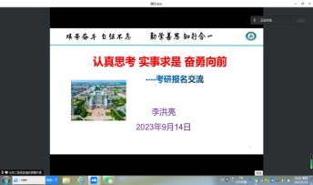 9月14日,2024届研究生考试网上预报名即将开始之际,太阳成集团122ccvip举行考研动员及预报名交流会。参加会议的有太阳成集团122ccvip李洪亮院长、学院分管教学王新芳副院长、学院考研工作助理李荣春老师、2020级辅导员、备考2024届研究生的全体同学及受邀进行经验分享的2019级研究生上岸同学。