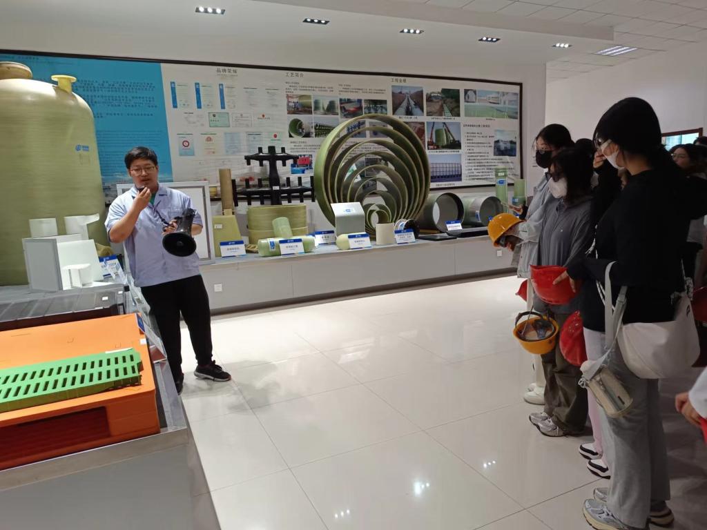 实习期间,公司负责人和技术工程师通过宣传片和实地走访的方式向同学们介绍了企业的文化理念和业务范围,并对相关生产的流程进行了大致讲解。为了让同学们能更多地了解企业生产实况,公司工程师带领同学们分别参观了样品室、基础实验室和生产车间,并详细介绍了PCM塑料的优良性能、生产工艺、和应用范围以及活性炭的回收技术和生产工艺,让同学们对所学内容有了更直观的认识和更深层次的理解。