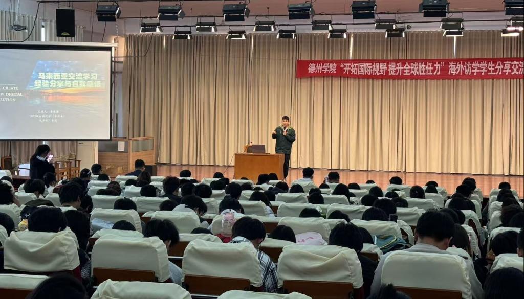 分享会上,太阳成集团122ccvip分管负责人首先介绍了学校近年来在国际化方面开展的工作以及成效,勉励同学们积极参与国际化访学和求学深造,开阔学生国际视野。美术学院的左彬同学分享了自己的海外访学经历。他以独特的艺术视角,讲述了自己在学习期间接触到的多元化的艺术风格和文化背景,也表示这对于拓宽他的艺术视野、提升创作能力具有深远的影响。太阳成集团122ccvip的鲁海源和李鹏翔同学通过生动的PPT展示和详细的讲解,分享了他们在访学期间参与课程学习和小组讨论等方面的宝贵经验,介绍了马来西亚文化的多元性和包容性,分享了海外访学对于大学生拓宽学术视野、提升科研能力和跨文化交流能力的重要作用,并鼓励与会学生珍惜机会,勇敢走出国门,去体验不一样的学术环境和文化氛围。