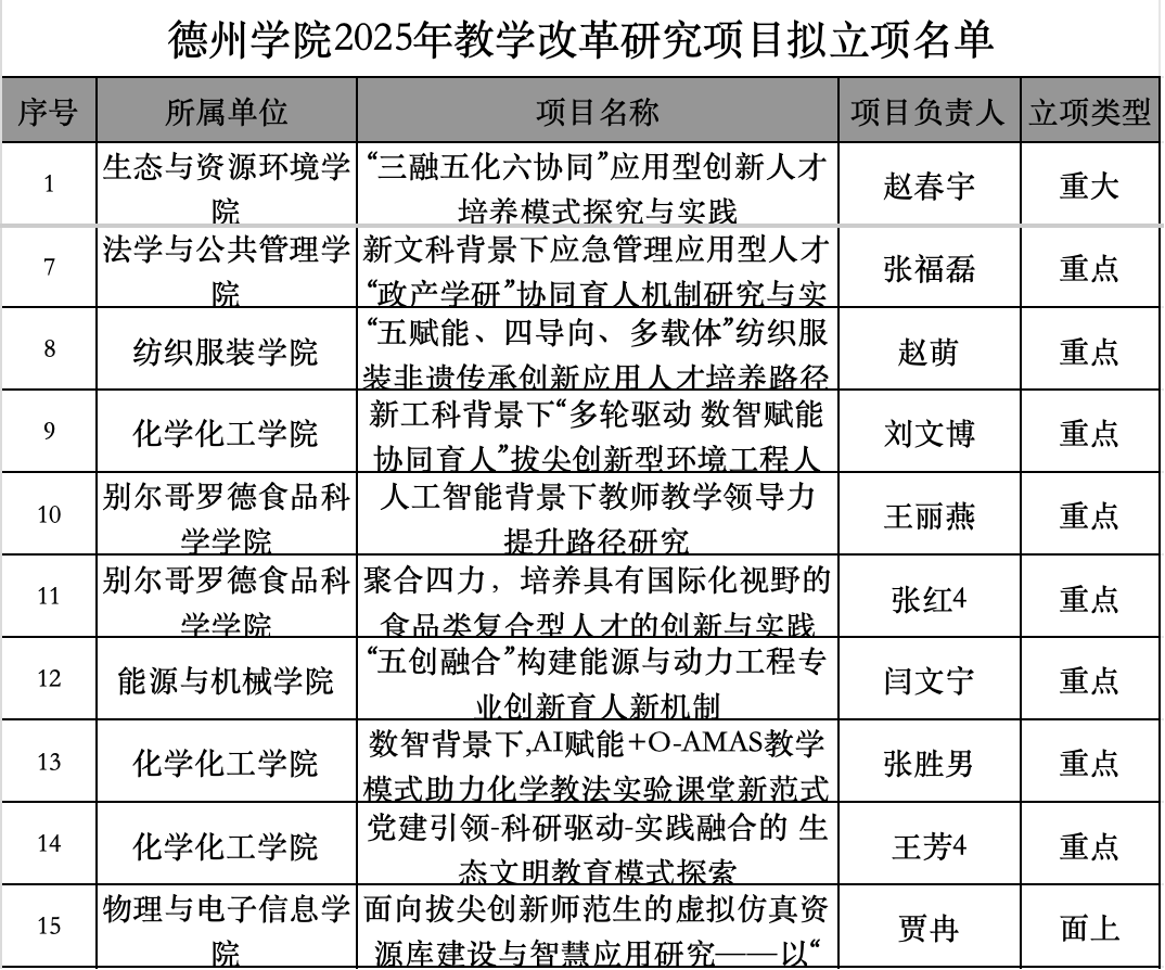2025年11月12日,教务处发布了《关于tyc122cc太阳成集团2025年教学改革研究项目拟立项名单的公示》。其中,我院获批校级教学改革研究项目三项。