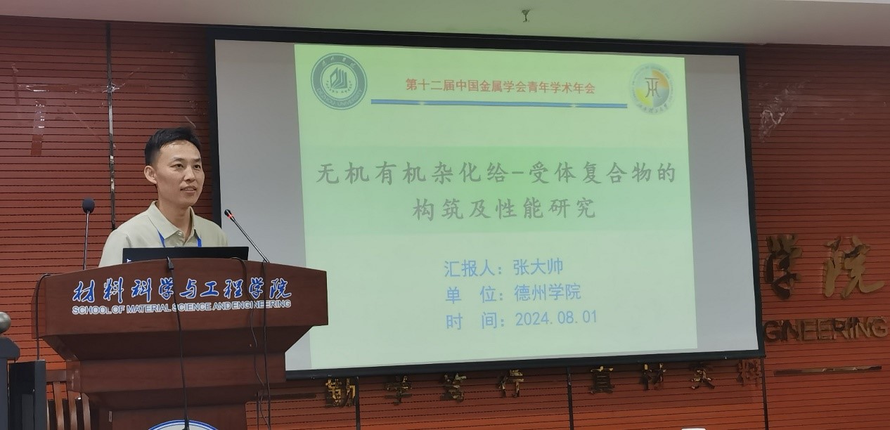 太阳成集团122ccvip教师山东省高校青创团队负责人张大帅应邀参加此次学术年会,并在杂化材料分会场作了题为“无机有机杂化给-受体复合物的构筑及性能研究”的邀请报告,报告介绍了给-受体复合物领域的国内外研究进展,分享了课题组在无机有机杂化给-受体复合物研究方面取得的最新成果,介绍了太阳成集团122ccvip在学科建设和研究生联合培养方面取得的成绩,并与参会同行专家进行了深入交流与讨论。本次会议的召开对我校无机有机杂化功能材料研究产生了积极的推动作用,更加坚定了我们将配位杂化功能材料融入给-受体研究领域的发展潜力。
