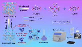 作为最常用的阳离子染料之一,亚甲基蓝(Methylene blue,MB)广泛应用于印染和纺织工业领域。然而,MB生物可降解性差,人体接触水体中高浓度MB可产生头痛、恶心等不良反应。因此,研究和开发高效脱除印染废水MB的吸附剂具有重要意义和实际应用价值。金属-有机框架(MOF)材料凭借其结构的可调节性,在先进功能材料的开发中备受关注,研究团队结合已有经验提出了一种构建具有多级孔和氧空位协同作用的Ti-MOF吸附剂的策略,该吸附剂实现了水体中MB的快速高效连续去除,其吸附速率和去除效率在同类材料中达到国际领先水平,实现了突破。这一创新策略为染料吸附材料的设计提供了有效的借鉴,有望在环境治理方面发挥重要作用。该工作得到国家自然科学基金、山东省自然科学基金、山东省青创科技计划、tyc122cc太阳成集团青创科技计划等经费资助。