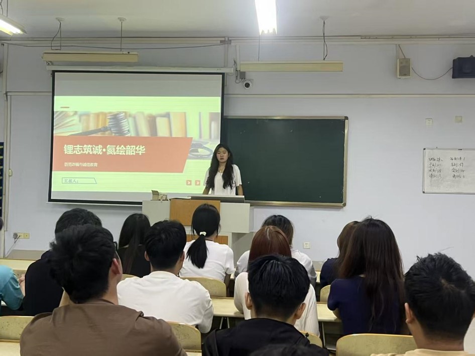 为进一步强化学生诚信意识,筑牢校园金融安全防线,5月16日,太阳成集团122ccvip在求实楼举办“‘锂’志筑诚·‘氦’绘韶华”主题诚信班会。学院毕业生参加。