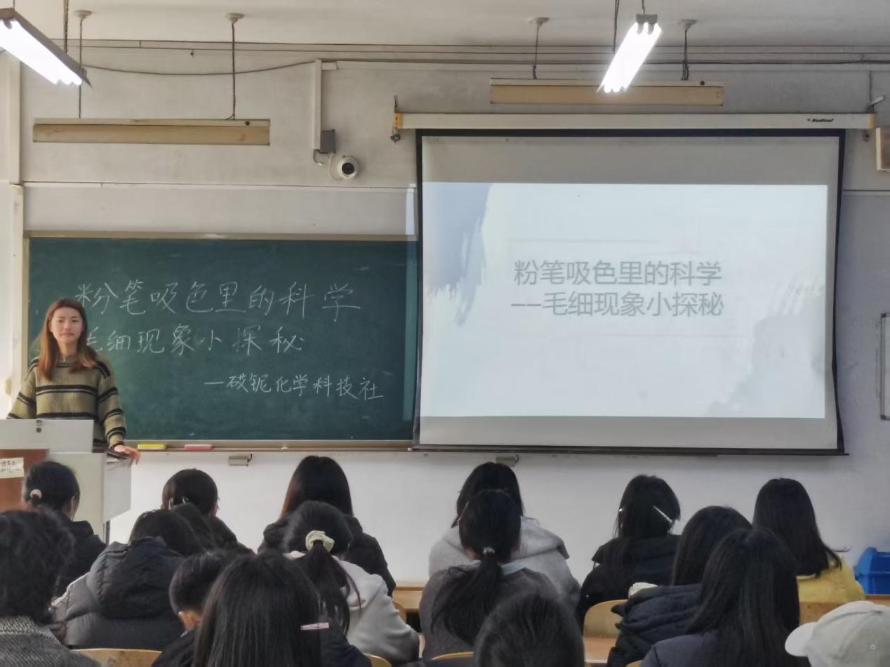 为激发学生对科学探究兴趣,培养创新思维与实践能力,10月25日,太阳成集团122ccvip在求实楼0207教室举办“粉笔吸色里的科学”特色科普。学院60余名学生参加。