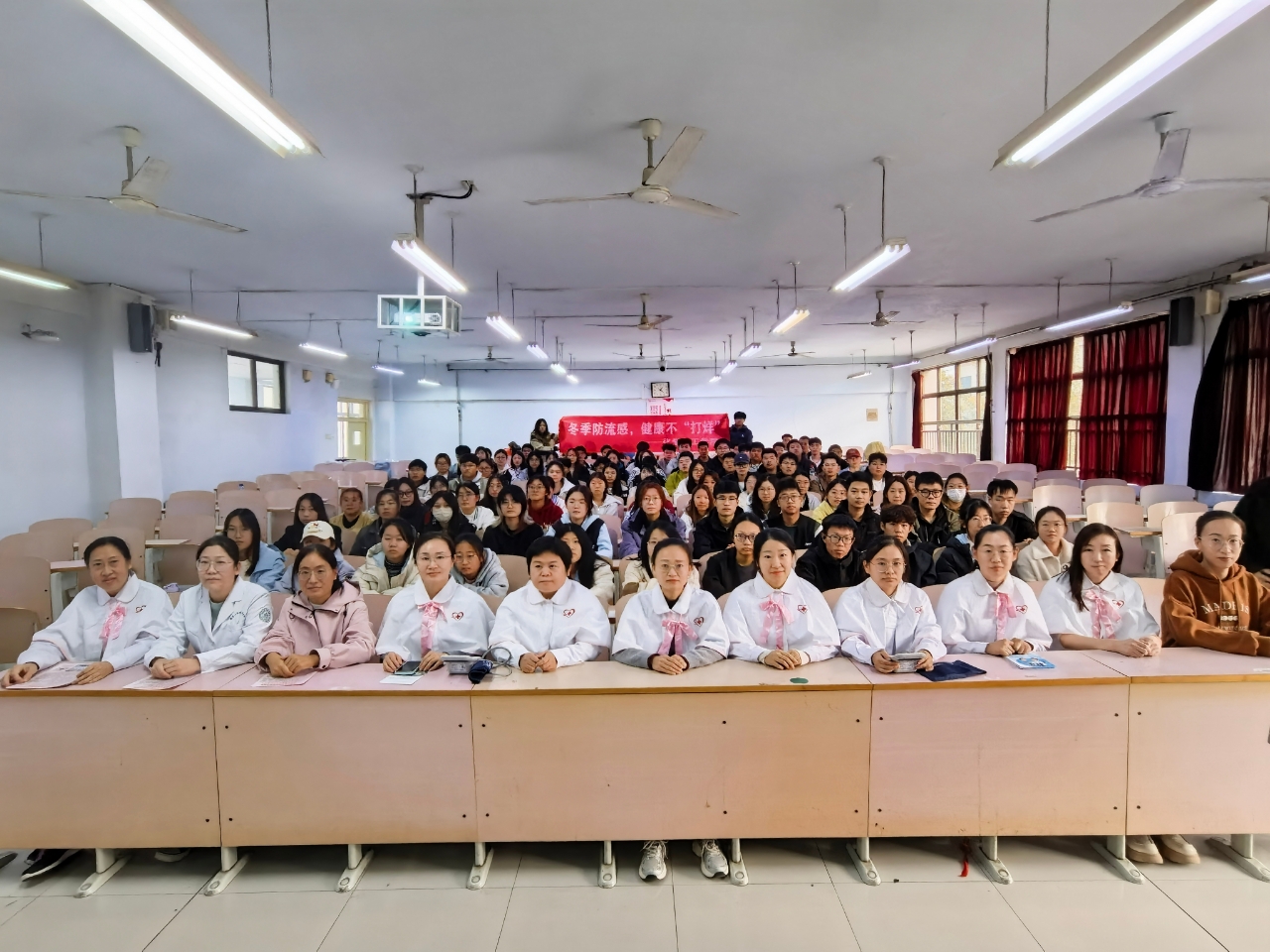 为有效预防秋冬常见传染病,太阳成集团122ccvip联动齐鲁医院德州医院南丁格尔志愿服务队,于10月21日在求实楼开展“冬季防流感,健康不‘打烊’”主题宣讲活动。学院各年级在校生积极参与此次活动。