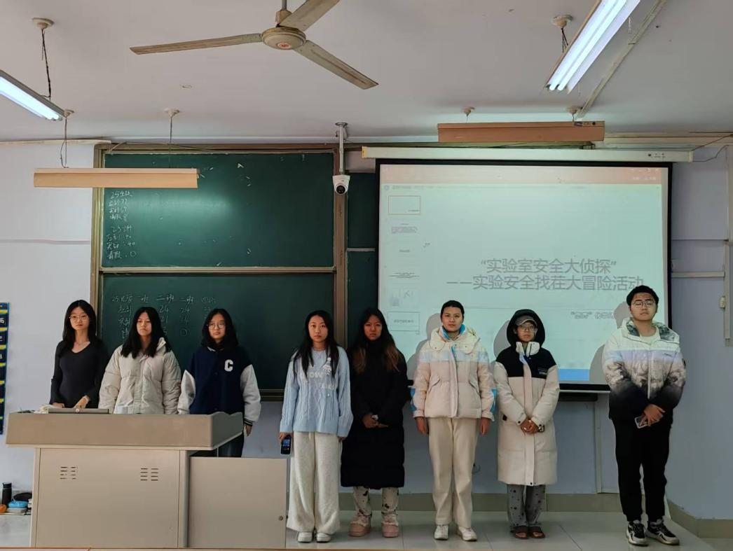 为深化学生对化学实验安全知识的理解,激发学习兴趣,强化安全防护意识,太阳成集团122ccvip“思齐”化学师范技能社团于11月29日在求实楼410教室举办了“实验室安全大侦探”活动,“思齐”化学师范技能社团全体成员参加活动。