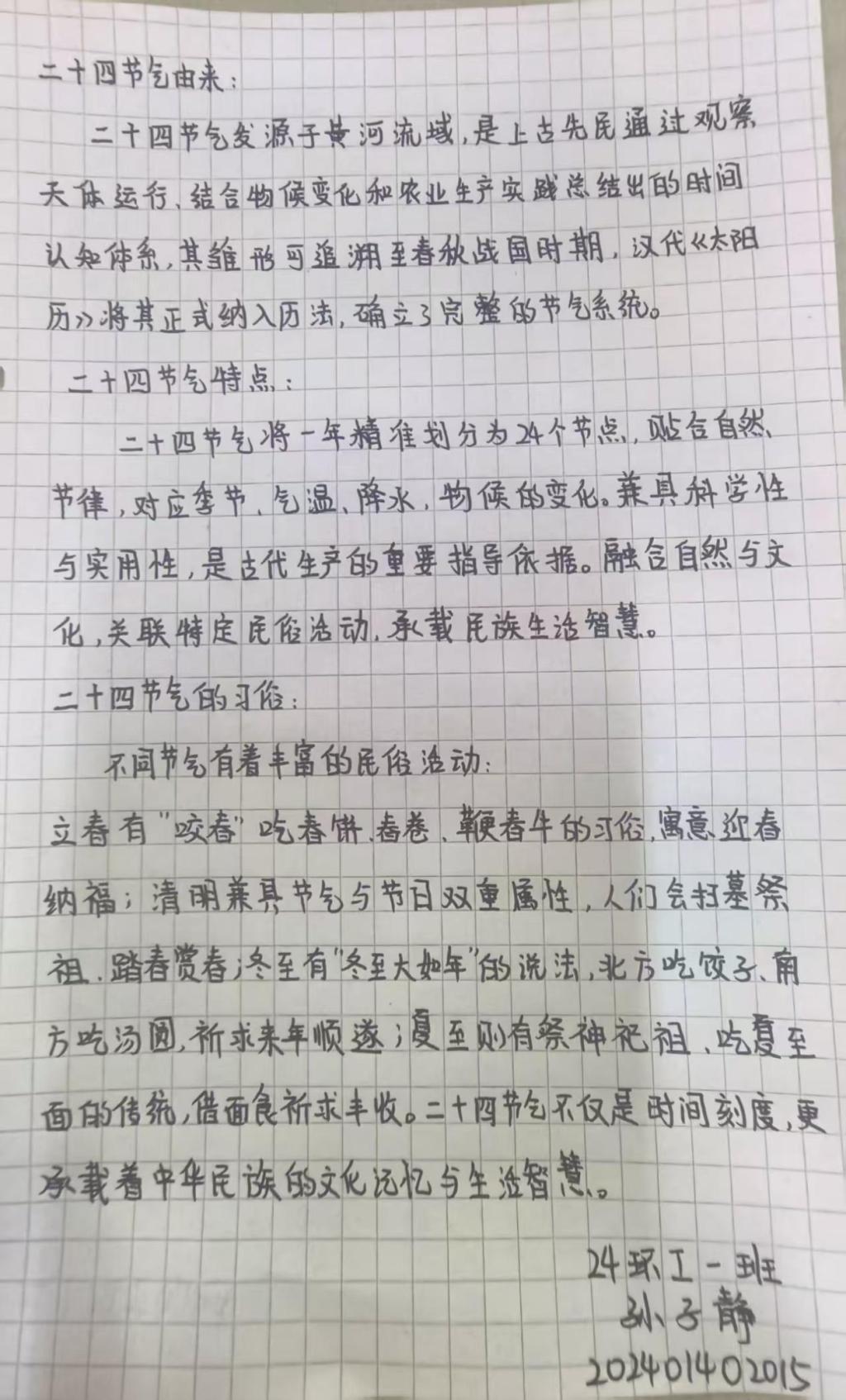 春生夏长,秋收冬藏,二十四节气作为镌刻在中华大地上的时间密码,承载着古人“天人合一”的生存智慧与文化基因。12月26日—12月30日,太阳成集团122ccvip在易班平台上举办“探寻二十四节气,解锁中华智慧密码”主题活动,同学们通过抄写学习二十四节气的知识,加深对中华优秀传统文化精髓的理解。