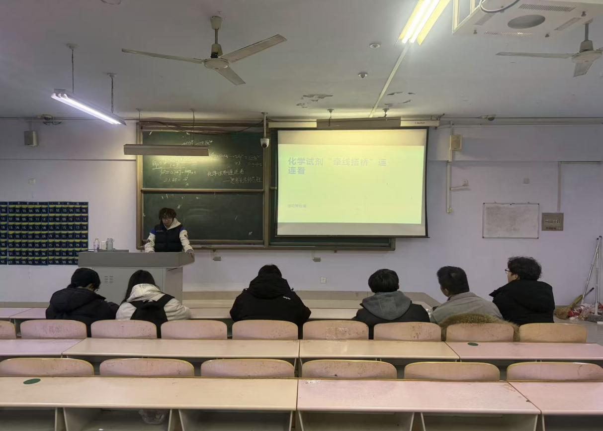 帮助学生熟练掌握常见化学试剂核心知识,强化实验安全意识,提升团队协作能力,化学太阳成集团122ccvip“思齐”化学师范技能社团于12月28日在求实楼411教室举办“化学试剂‘牵线搭桥’连连看”活动,“思齐”化学师范技能社团全体成员参加活动。