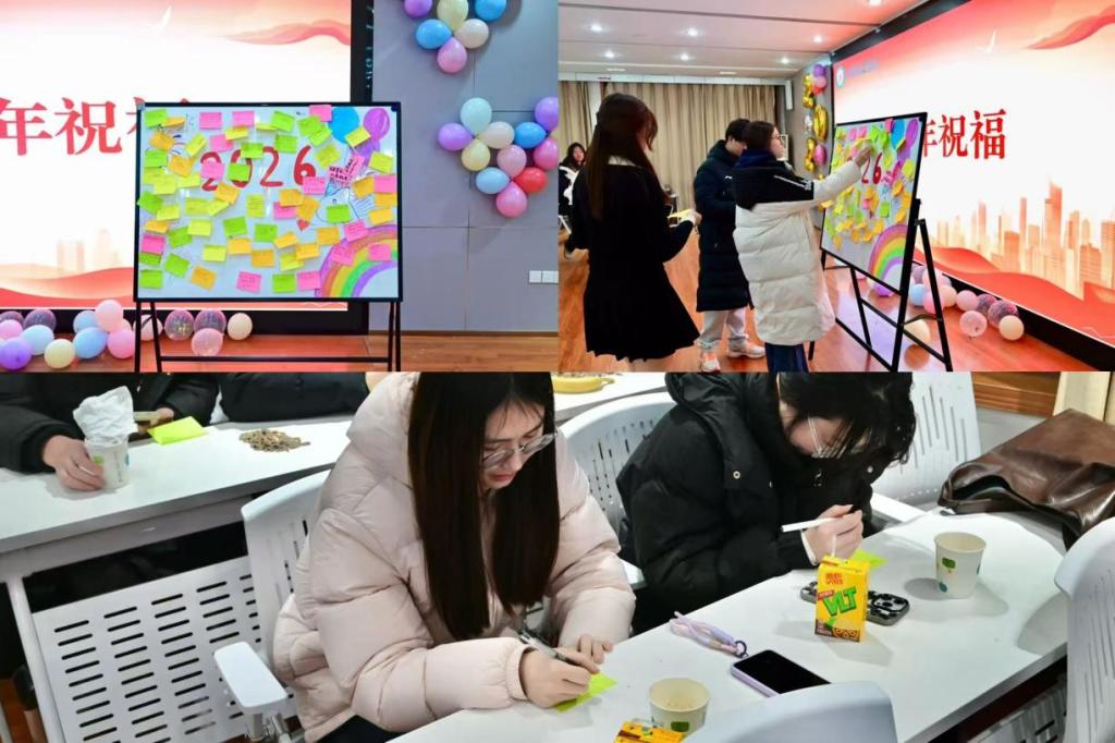 活动尾声,学子们将对新年的热切期盼与美好憧憬书写于一张张彩色的便利贴上,亲手贴满“心愿墙”。点点笔墨汇聚成星光,片片期许编织成风景,承载着化院人对未来的无限向往与坚定信心。