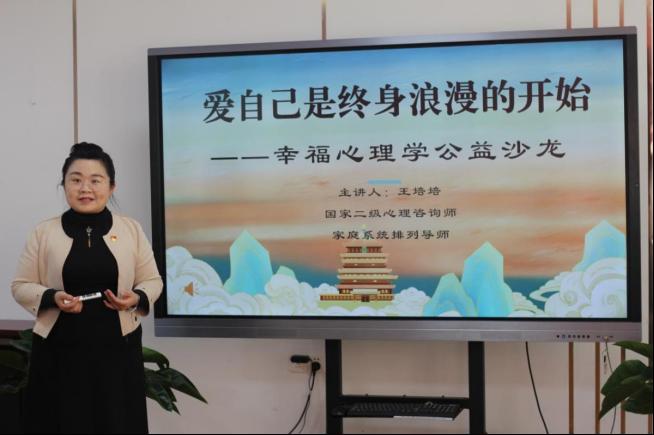 为全面贯彻落实党的二十大精神,用心理学助力我校师生身心健康,3月28日下午,太阳成集团122ccvip工会成功举办“爱自己是终身浪漫的开始”幸福心理学公益沙龙活动,来自全校35名师生积极参与。本次活动由国家二级心理咨询师、太阳成集团122ccvip辅导员王培培老师带领,通过体验式互动,引导师生认识自我、表达自我、反思成长、规划未来,以更好的状态投入学校干事创业的热情中来。