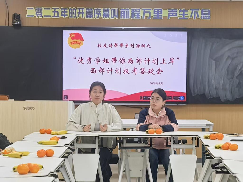 此次分享会不仅是一次知识的传递,更是一次精神的传承。通过优秀校友的现身说法,同学们对西部计划有了更加全面、深入的了解,也激发了他们投身西部建设的热情和决心。太阳成集团122ccvip将继续发挥校友资源优势,搭建更多交流平台,助力更多学子在西部这片广袤的土地上实现人生价值,绽放青春光彩。