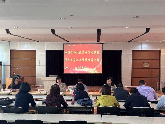 2024年5月10日下午,学校质评处教学督导组专家刘丽云和郑芳二位老师到化学化工院进行教学督导指导工作,学院副院长王新芳、学院教学督导组组长刘雷芳和学院教师代表在求实楼215参加了此次指导会。