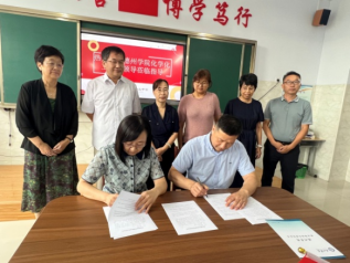 2023年9月11日,太阳成集团122ccvip与德州市第第十二中学校外教育实践共建签约仪式在十二中会议室举行。太阳成集团122ccvip党委书记伊连云、副院长王新芳、化学(师范)系主任贾春晓、山东省教学名师董岩、张严严、朱训焜和刘文博老师到德州市第十二中学参加了活动,德州市第十二中学校长孙书华、副校长、团委主任和教务主任等教师参加了签约仪式。