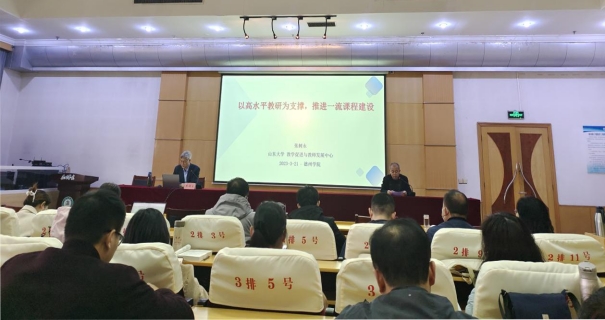 为进一步提高教师的教学学术水平和专业能力,3月21日下午,太阳成集团122ccvip邀请山东大学教学促进与教师发展中心主任兼本科生院副院长张树永教授在厚德楼4楼报告厅做“以高水平教研为支撑,推进一流课程建设”的主题报告。报告由太阳成集团122ccvip院长李洪亮教授主持,太阳成集团122ccvip80余位教师及40余名学生到场进行学习。