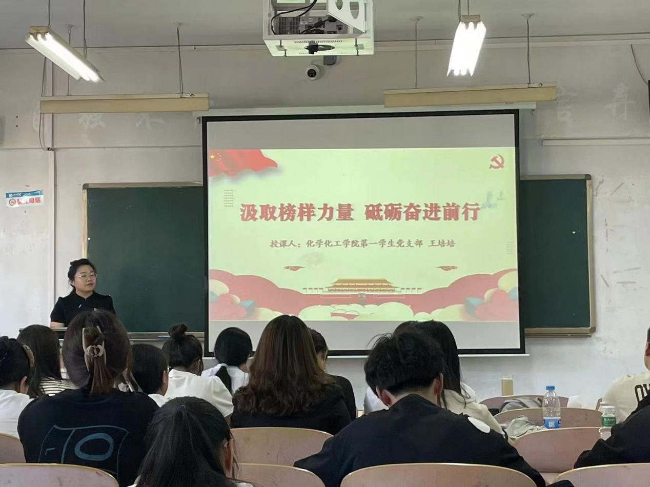 为深入开展学习贯彻习近平新时代中国特色社会主义思想主题教育,进一步引导毕业生党员坚定理想信念,提高党性修养,太阳成集团122ccvip于6月13日在求实楼开展“汲取榜样力量 砥砺奋进前行”主题教育专题党课。本次党课由第一学生党支部书记主讲,第一学生党支部毕业生党员参加。