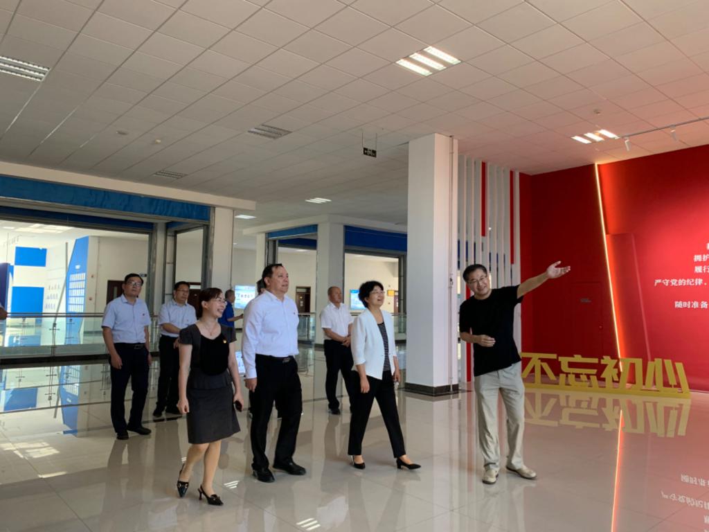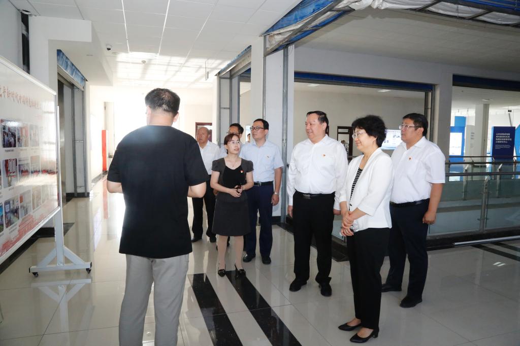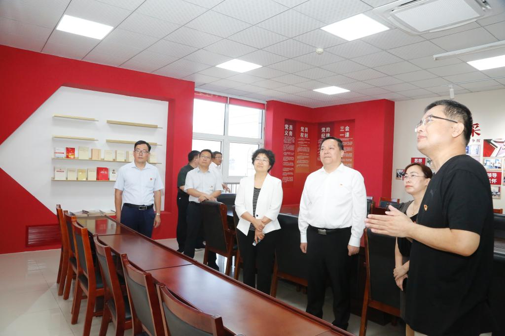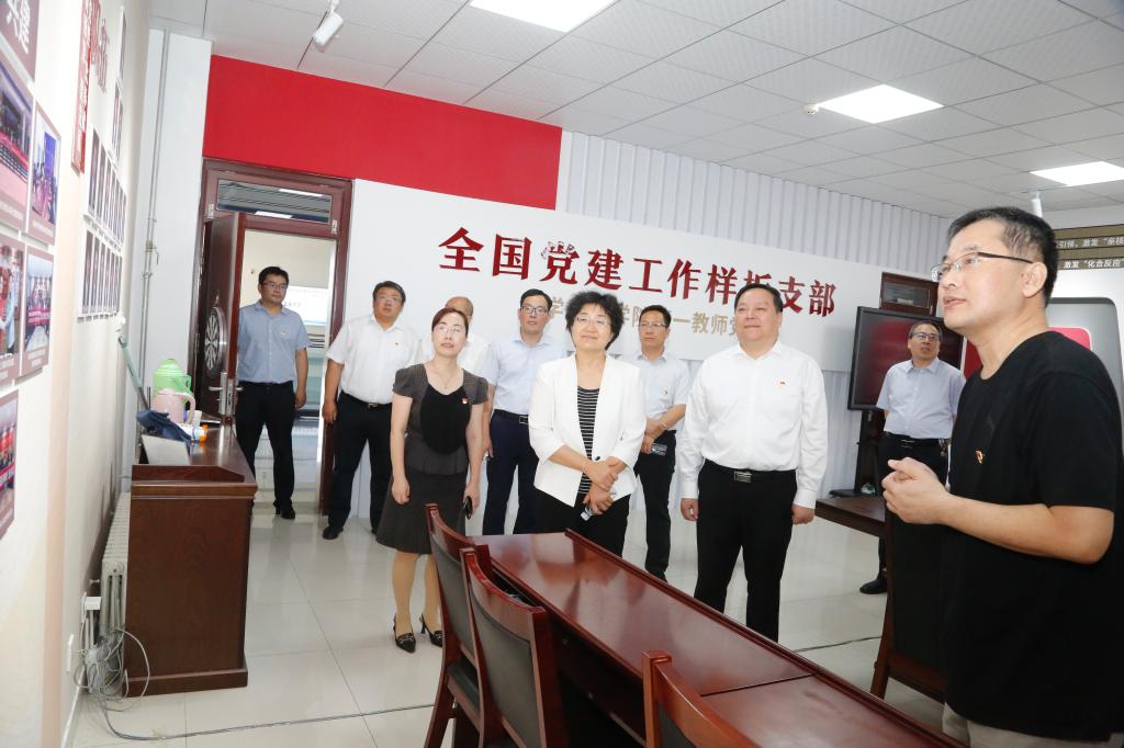 6月29日,省委主题教育第二十一巡回指导组副组长崔晓红,指导组成员杨大胜、周彬彬、宋茂晋到全国样板党支部——太阳成集团122ccvip第一教师党支部指导工作,校领导车滨、王金利陪同参观。