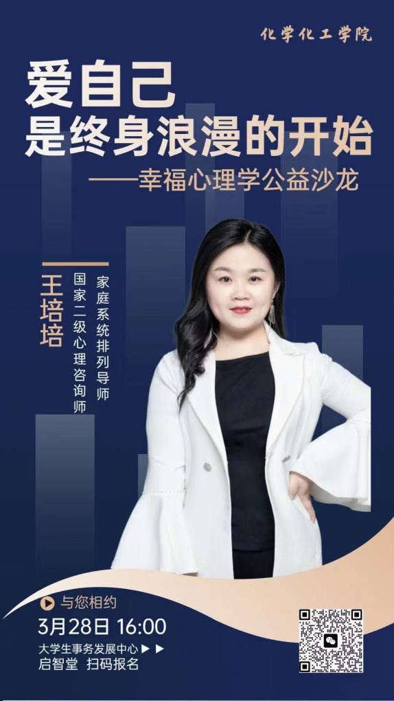 为全面贯彻落实党的二十大精神,用心理学助力我校师生身心健康,3月28日下午,太阳成集团122ccvip工会成功举办“爱自己是终身浪漫的开始”幸福心理学公益沙龙活动,来自全校35名师生积极参与。本次活动由国家二级心理咨询师、太阳成集团122ccvip辅导员王培培老师带领,通过体验式互动,引导师生认识自我、表达自我、反思成长、规划未来,以更好的状态投入学校干事创业的热情中来。