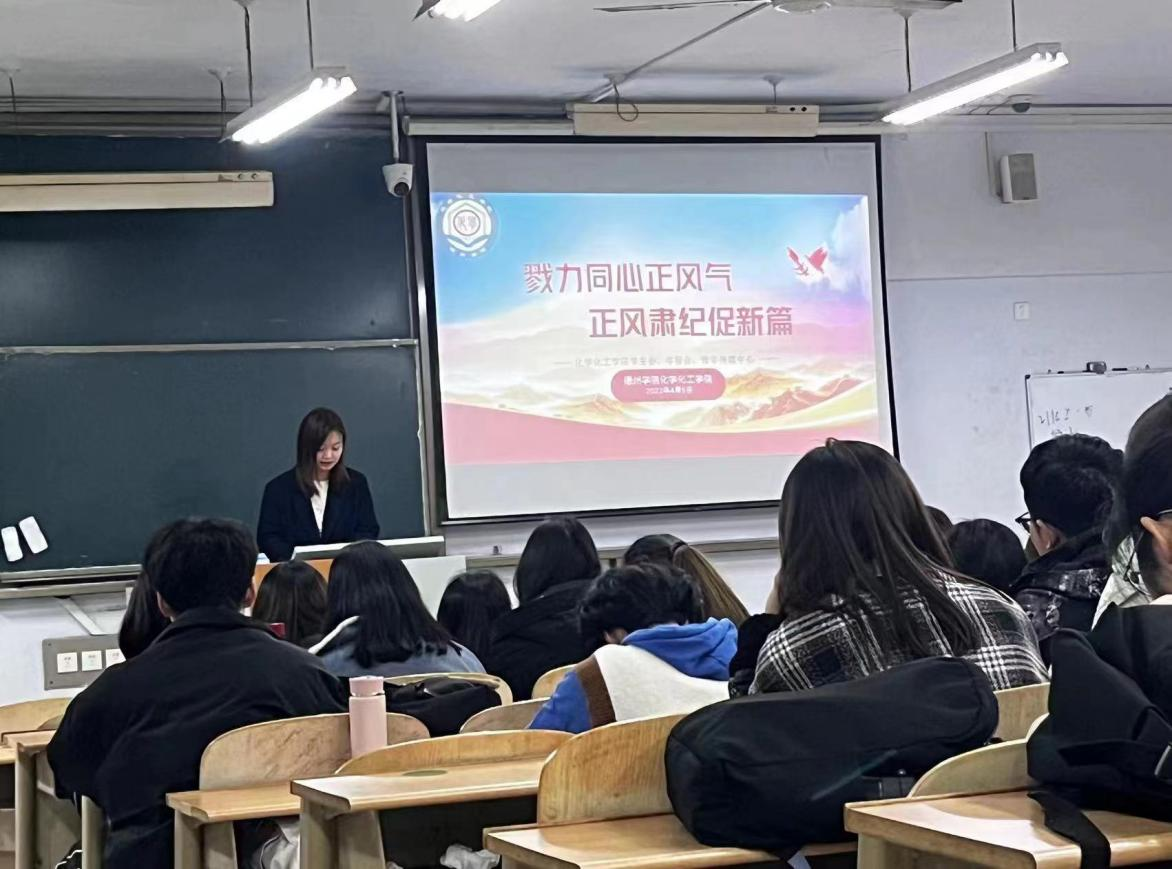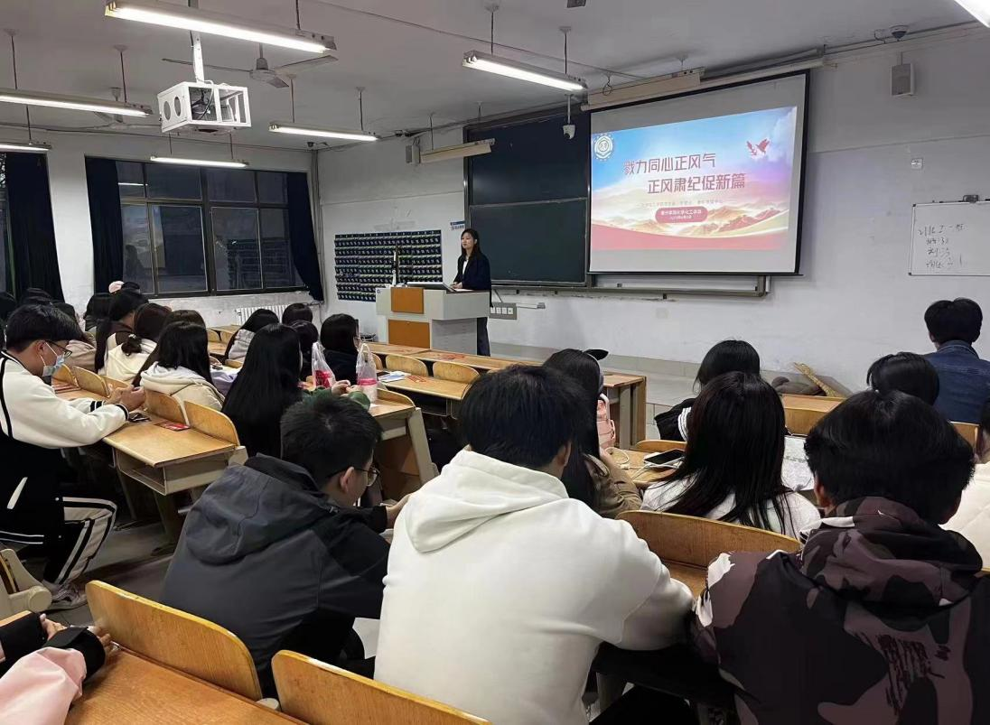 为进一步加强学生干部自律意识和服务意识,全面提高学生干部队伍综合素质,4月5日,太阳成集团122ccvip于求实楼212教室举行“勠力同心正风气,正风肃纪促新篇”学管会正风肃纪大会。会议由相关老师主持,班长、团支书、学管会成员参加。