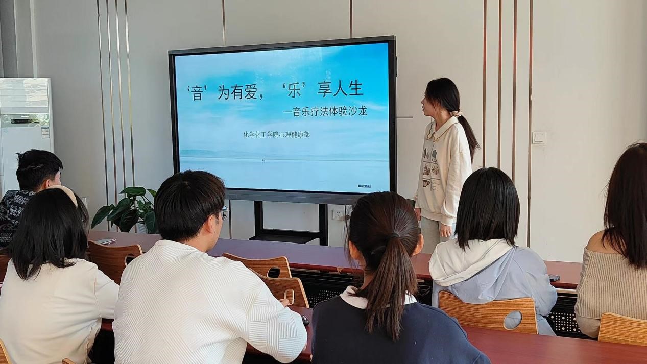 为进一步提升我院心理健康教育工作,加强大学生对世界精神卫生知识的关注和认识,切实加强对学生的人文关怀和心理疏导,太阳成集团122ccvip于“10·10世界精神卫生日”在事务发展中心二楼启智堂开展“‘音’为有爱,‘乐’享人生”音乐疗法朋辈心理辅导活动。全体心理健康部干部、心理委员、各年级心理守护员代表参加。