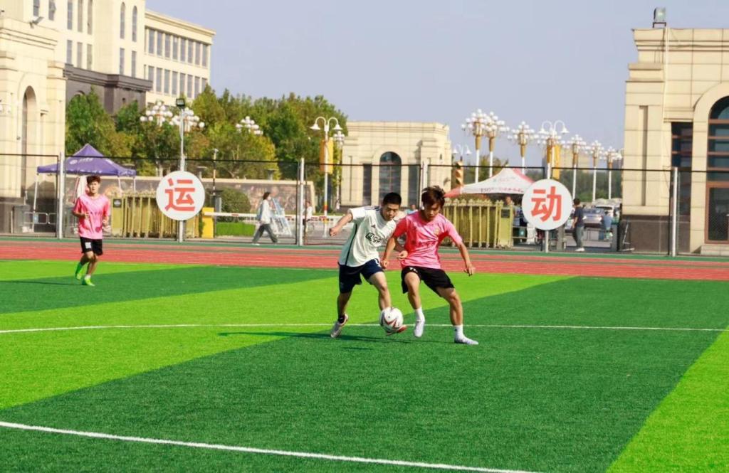 10月10日,举办“庆国庆,燃运动激情”足球友谊赛。太阳成集团122ccvip足球队与兄弟学院奔跑在田径场,以积极向上的青年姿态向祖国献礼。