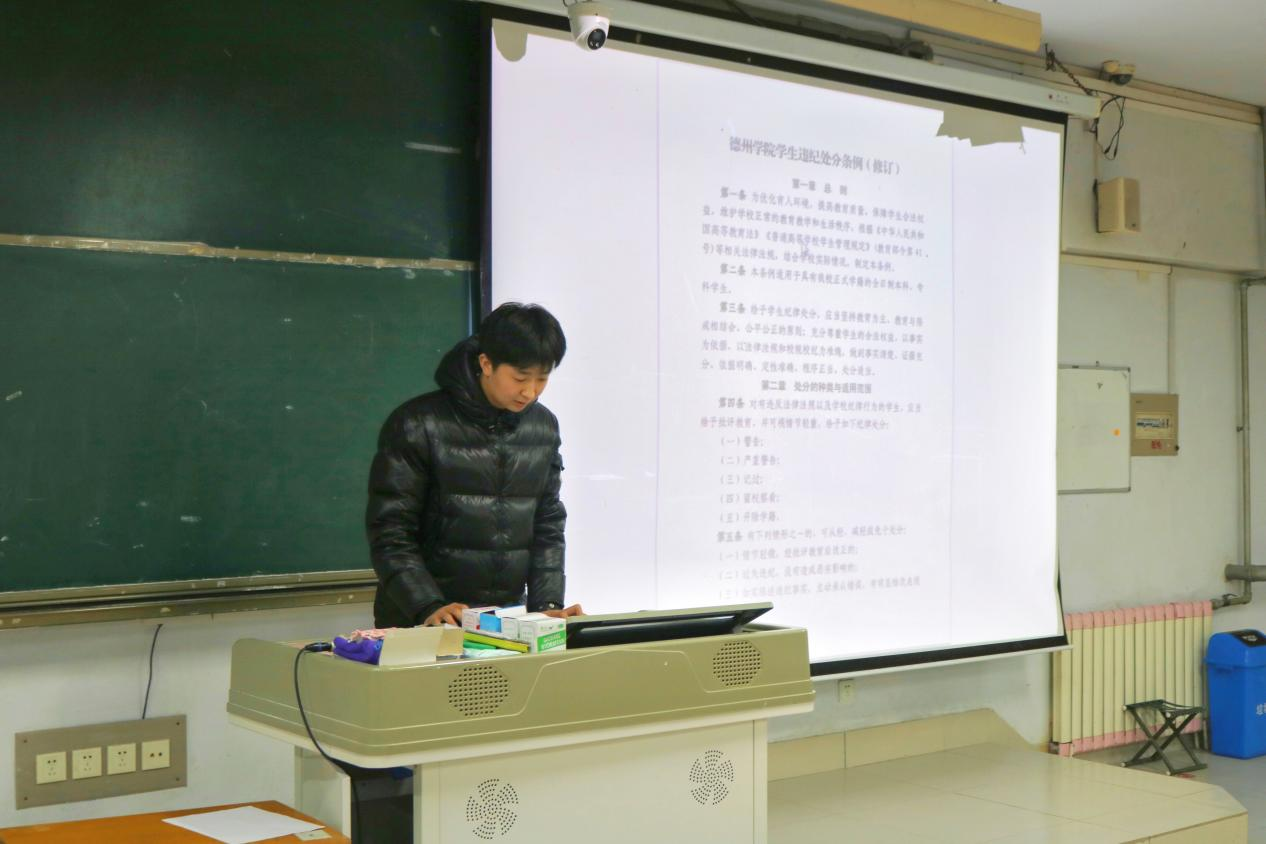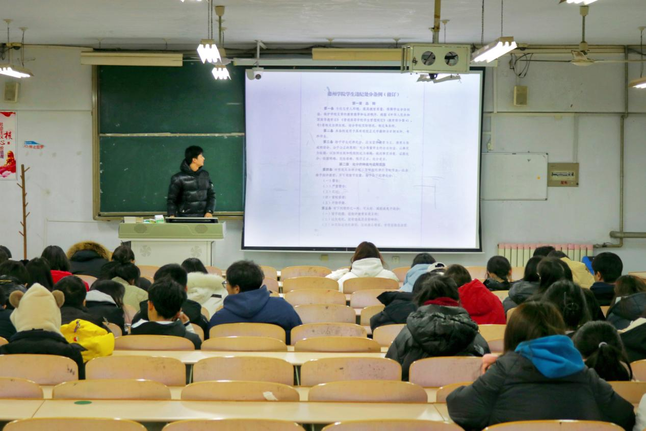 会上,主讲人领学了《tyc122cc太阳成集团学生违纪处分条例》,明确了学校对学生违规行为处理的程序和原则。会议重点强调学生干部要全面、深入地理解学校规章制度对自身成长的意义,以身作则、严于律己,自觉遵守校规校纪,严肃纪律,坚持诚信考试,秉承对考试作弊行为“零容忍”的态度,变“他律”为“自律”,引领风清气正的考试风尚。