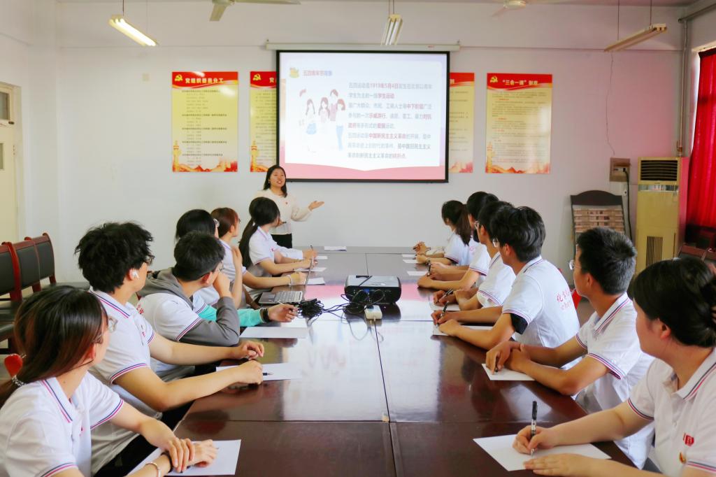 为纪念五四运动105周年,弘扬和传承“爱国、进步、民主、科学”的五四精神,贯彻落实tyc122cc太阳成集团2024年五四表彰大会暨青春思政课会议精神,凝聚青年力量。5月6日,太阳成集团122ccvip团委于求实楼504会议室举办传承五四精神暨青春思政课,开展爱国主义教育。学院团委书记主讲,20余位团干部参加。