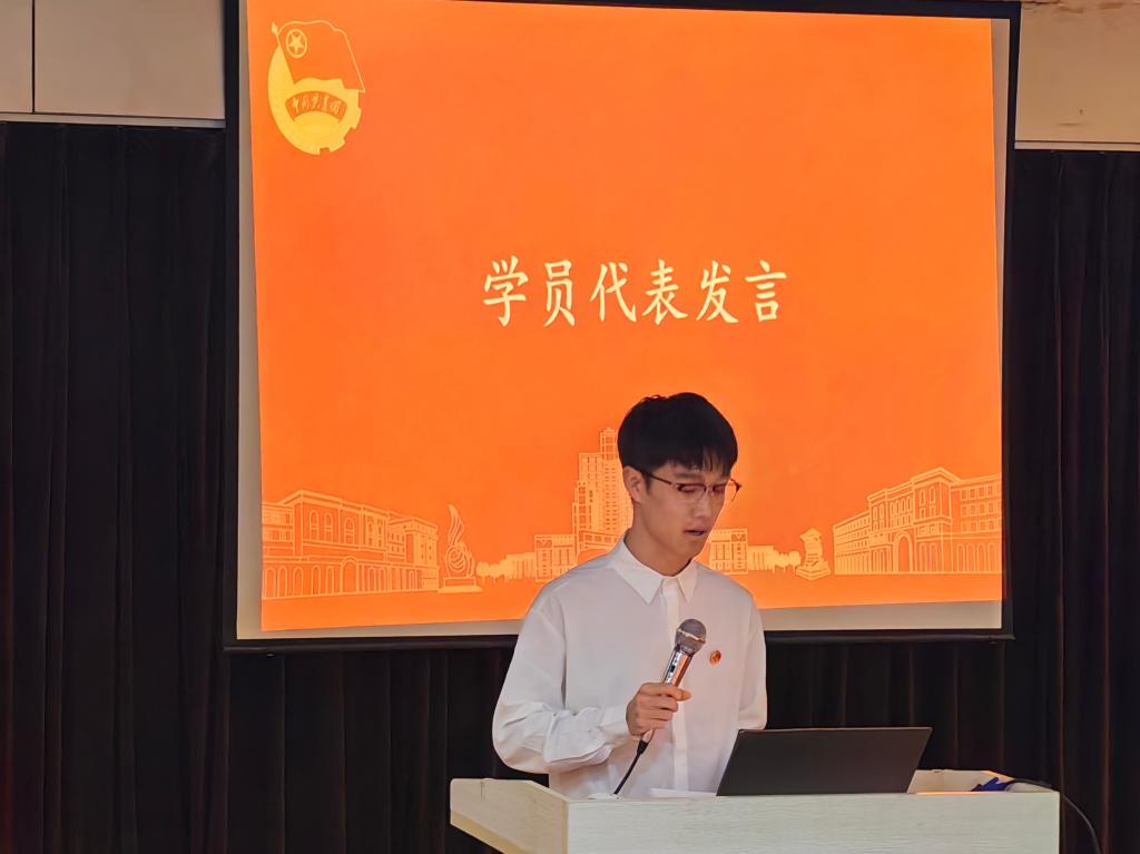 开班仪式在嘹亮的团歌中拉开帷幕。学院团委书记传达了《tyc122cc太阳成集团 2024-2025学年“青年马克思主义者”培训班课程安排》,对此次培训班的课程内容作了详细说明。党委副书记为参训学员代表授旗,参训学员代表作表态发言,表达了认真参加培训,争取优异成绩的决心。