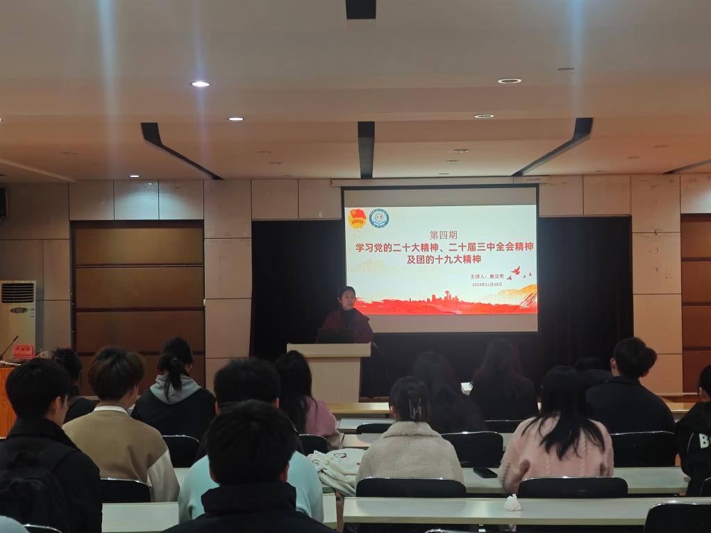 主讲人围绕“精神引领,青春担当”主题,讲述了党的二十大、二十届三中全会、团的十九大会议的主要内容、重大意义和精神实质,强调了进一步全面深化改革的必要性和紧迫性。随后,主讲人领学习近平总书记对青年的殷切寄语,鼓励青年要坚定理想信念、夯实专业知识、积极参与社会实践。同学们纷纷表示要坚定不移听党话、跟党走,立志做有理想、敢担当、能吃苦、肯奋斗的新时代好青年。