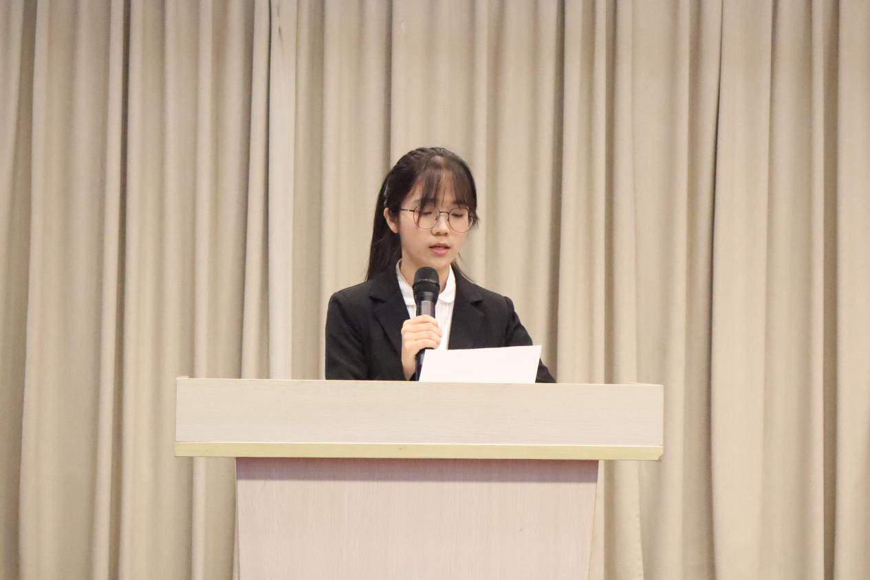 学生工作办公室主任宣读《太阳成集团122ccvip强化文明行为养成 培育优良校风学风“十个一工程”专项行动实施方案》,她详细介绍了本次方案的主题、目标、内容以及具体安排。学院将开展一系列丰富多彩的活动,激发学生学习兴趣,增强学生文明修养。