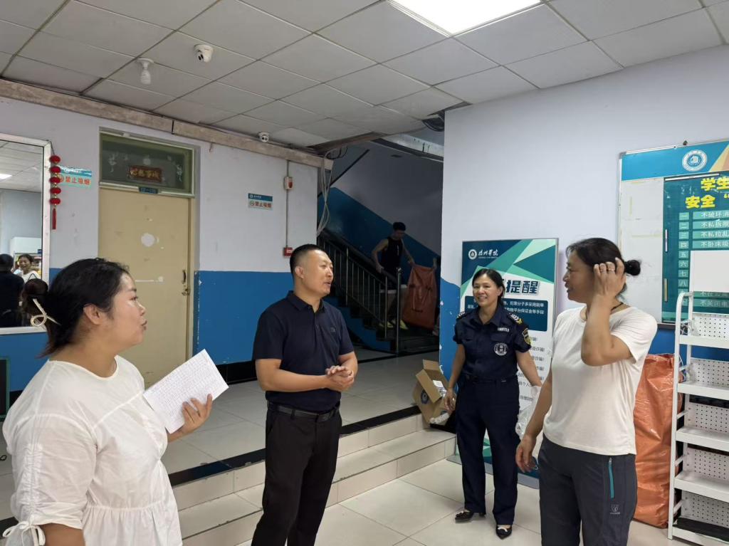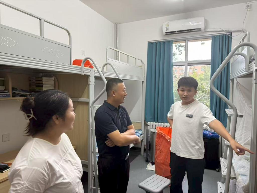走访过程中,领导老师们轻叩房门,走进各间寝室,细致检查宿舍内的床铺稳固性、桌椅完好度、水电设施运行情况等,仔细询问同学们使用是否便利。交流中,学院党委副书记主动关切地询问学生的暑假生活趣事以及新学期的学习规划与生活期待。同学们敞开心扉,积极分享假期里的收获与感悟,畅谈新学期的目标与憧憬,现场气氛暖意融融,充满欢声笑语。领导们还勉励同学们,在新的学期里要保持昂扬向上的精神状态,既要潜心钻研学业,也要积极参与实践,勇于迎接挑战,在成长路上不断突破自我。