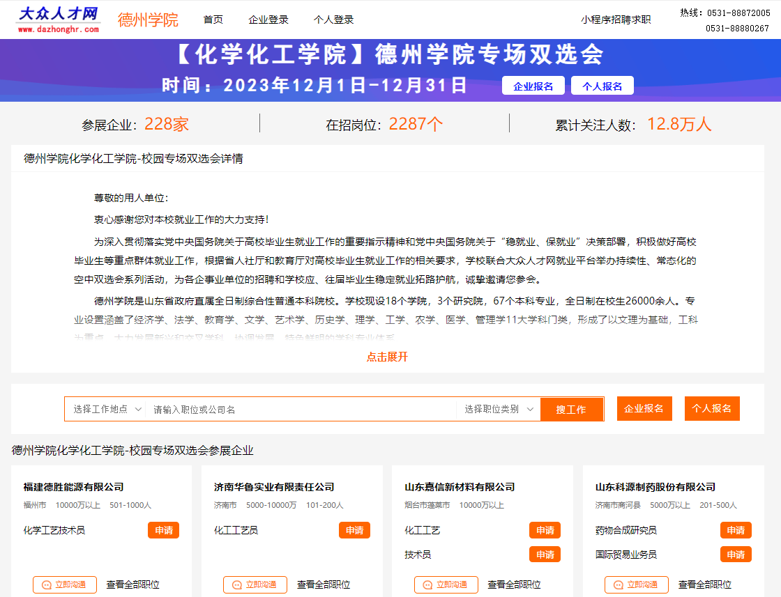 为深入贯彻落实党中央国务院关于高校毕业生就业工作的重要指示精神和党中央国务院关于“稳就业、保就业”决策部署,积极做好高校毕业生等重点群体就业工作,根据省人社厅和教育厅对高校毕业生就业工作的相关要求,学校联合大众人才网就业平台举办持续性、常态化的空中双选会系列活动,为各企事业单位的招聘和学校应、往届毕业生稳定就业拓路护航,诚挚邀请您参会。