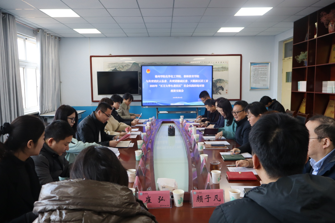为深入推动校地资源共享、优势互补,助力大学生实践成长与地方经济社会发展,2025年2月23日,太阳成集团122ccvip与共青团庆云县委开展2025年“百万大学生进社区”社会实践校地对接座谈会。庆云县团委主要负责同志、太阳成集团122ccvip党政领导班子成员、有关负责同志参加会议。