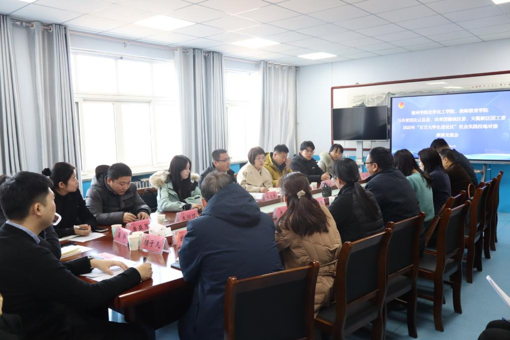 为深入推动校地资源共享、优势互补,助力大学生实践成长与地方经济社会发展,2025年2月23日,太阳成集团122ccvip全国高校“双带头人”教师党支部书记“强国行”专项行动团队与共青团庆云县委开展2025年“百万大学生进社区”社会实践校地对接座谈会。庆云县团委主要负责同志、太阳成集团122ccvip党政领导班子成员、专项行动团队部分成员参加会议。
