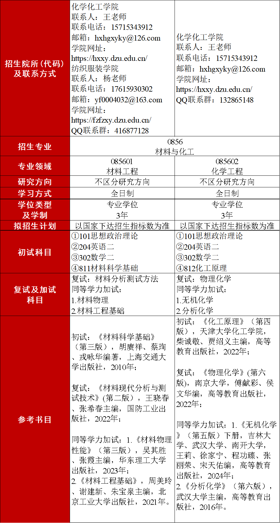 学科专业面向国家发展战略,服务区域行业发展,致力于培养材料与化工行业领域的应用型创新人才,形成精细化工、传质与分离工程、绿色化学工程、专用化学品、半导体材料、新型功能材料、催化材料和纺织材料特色优势方向。2010年起已累计培养硕士研究生51名。近5年,获批国家级课题17项,省部级课题26项,在Adv.、Mater.、JACS等重要刊物发表高水平论文100余篇,授权发明专利34项,获山东省科技进步二等奖等科技奖励8项。