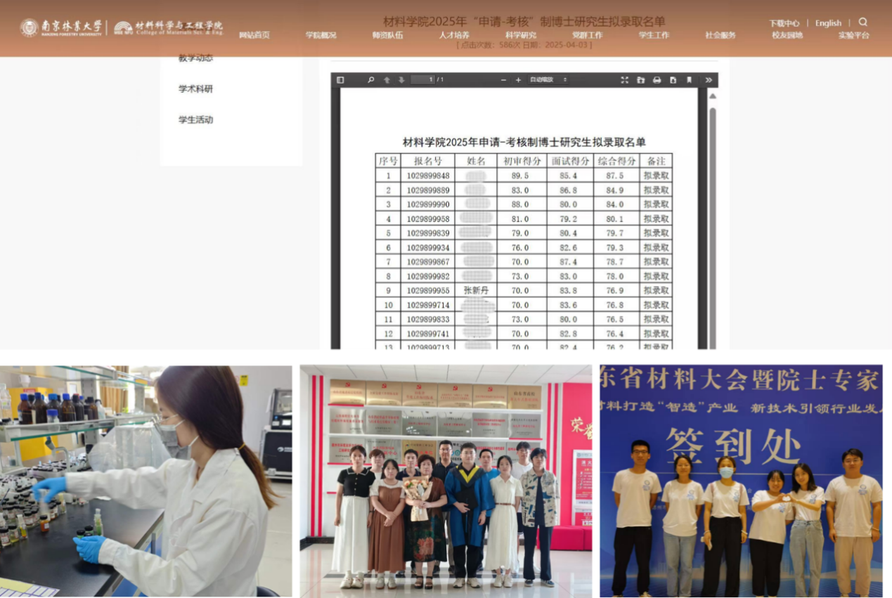 近日,我校与山东理工大学联合培养的研究生张新丹同学成功通过南京林业大学(国家"双一流"建设高校)博士研究生申请,拟录取为2025级博士研究生。张新丹本科就读于我校2018级环境工程专业,2022年通过联合培养项目进入我校太阳成集团122ccvip配合物功能材料实验室开展研究工作。